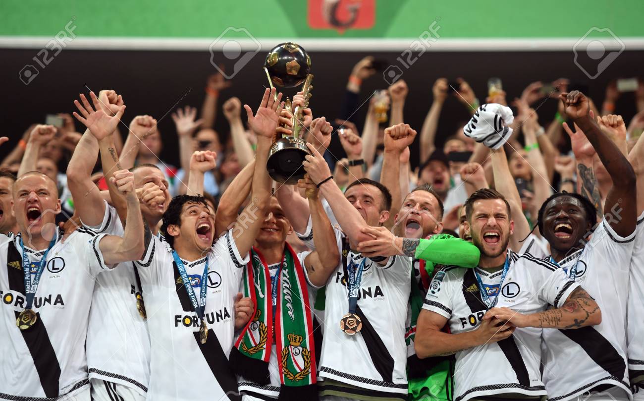 Warsaw Poland June 04 2017 Extra League Polish Premier League Legia Warsaw Lechia Gdansko P Legia Warsaw League Champions Adam Hlousek Maciej Dabrowski Guilherme Arkadiusz Malarz Miroslav Radovic Stock