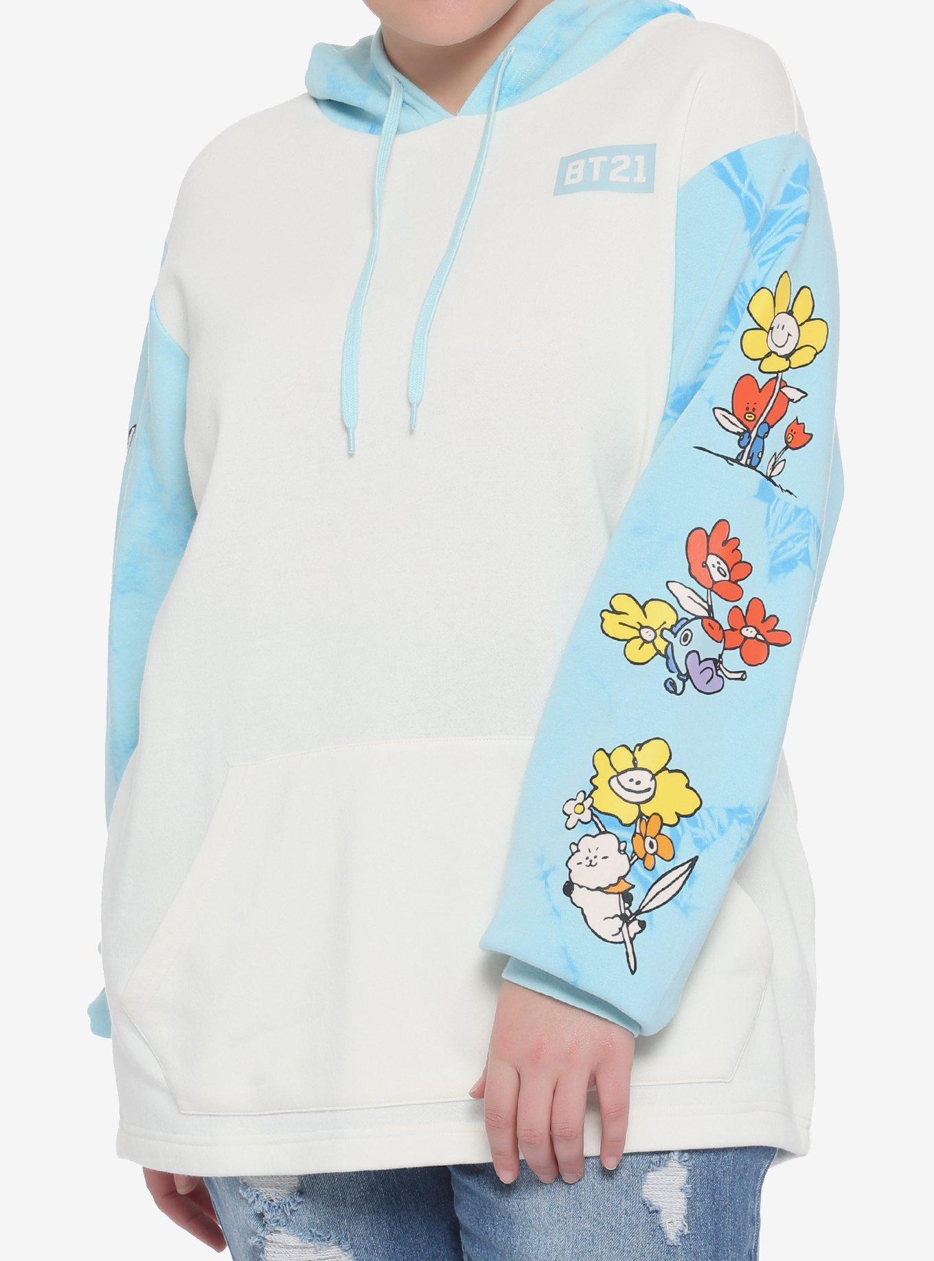 Bt21 Floral Tie Dye Color Block Girls Hoodie Plus Size